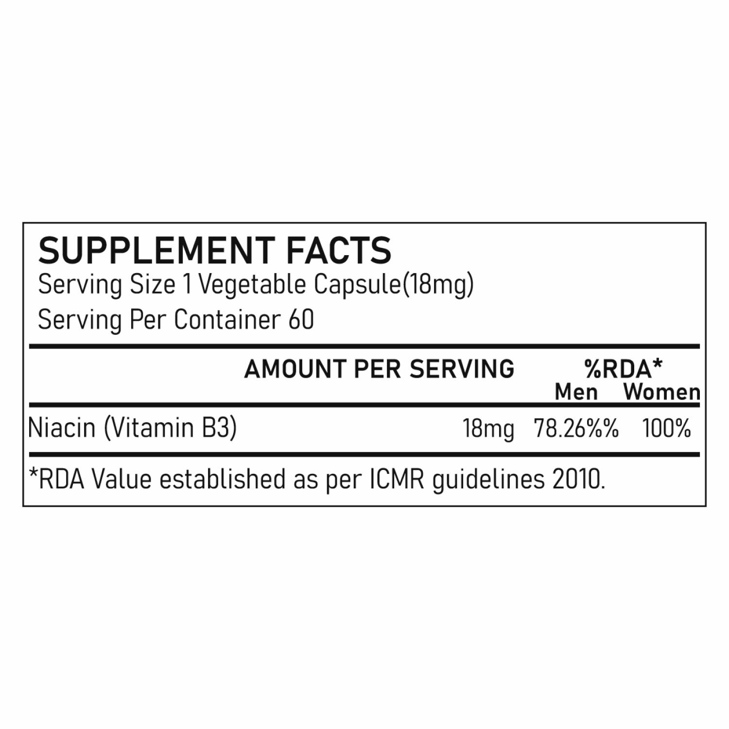 Take one Niacin tablet daily with water, preferably with a meal, to support heart health, energy production, digestive health, brain function, and skin health.
