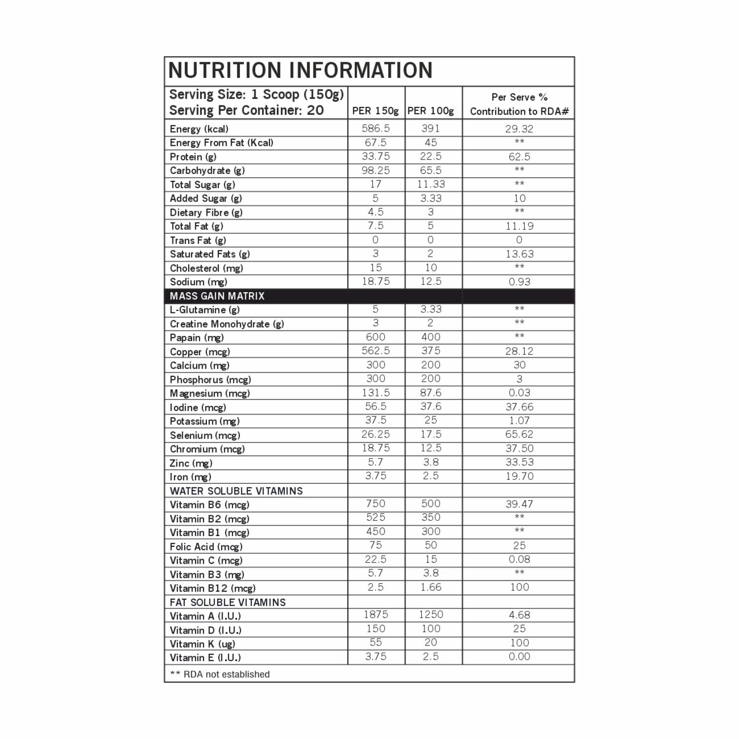 Add three pouches of Gainer with cold water or any other beverages of your choice. You can vary the amount of liquid to achieve desired consistency or thickness. To increase the calories and protein intake per serving, it is recommended to consume it with milk or a milkshake. For massive muscle growth, consume 2-3 servings in a day to meet your calories and protein requirement.