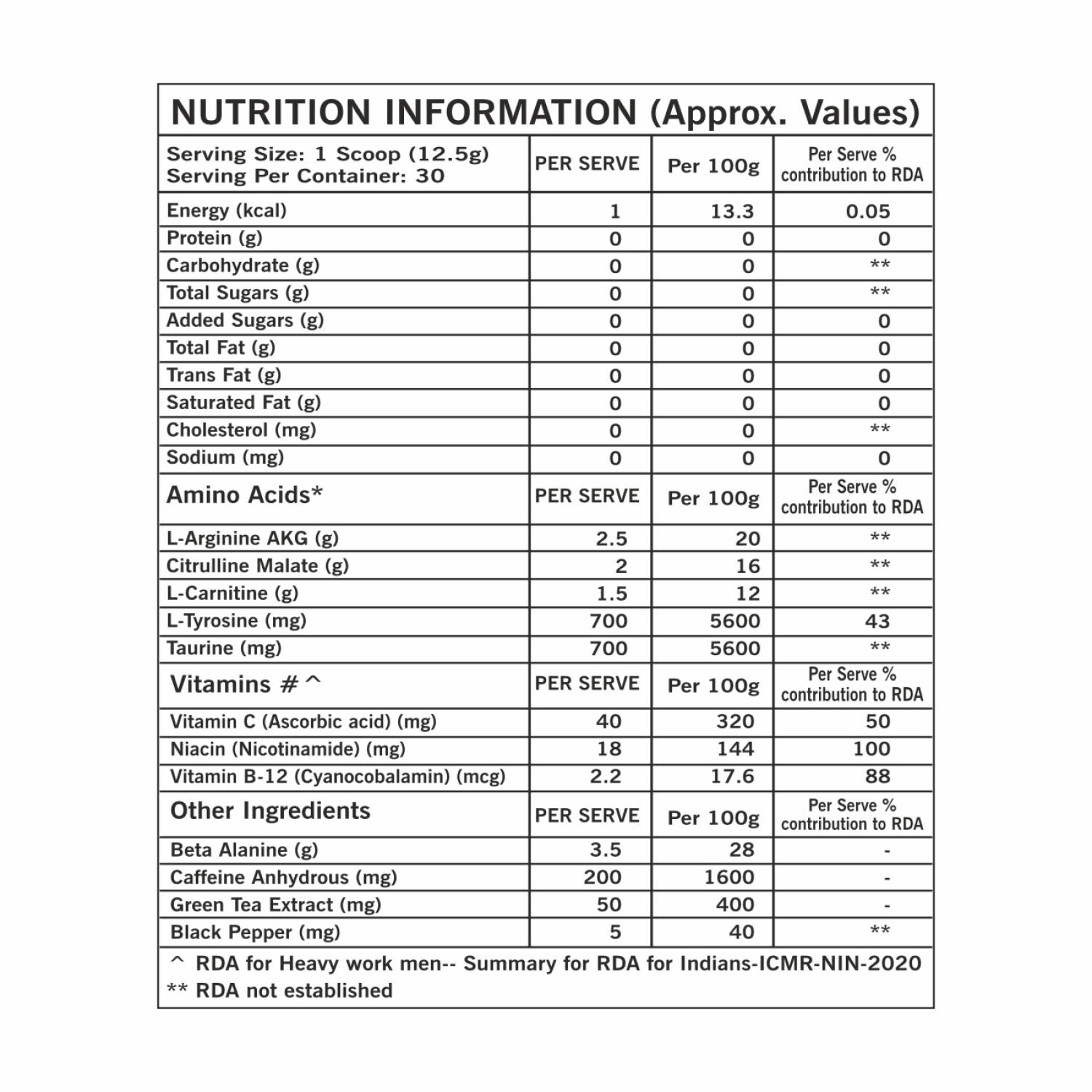 How to use: Consume 1 scoop of the Pre Workout 1 time per day before your workout with water or any preferred beverage and mix it well before consumption. As advised, the supplement should be taken around 20 minutes before exercising.