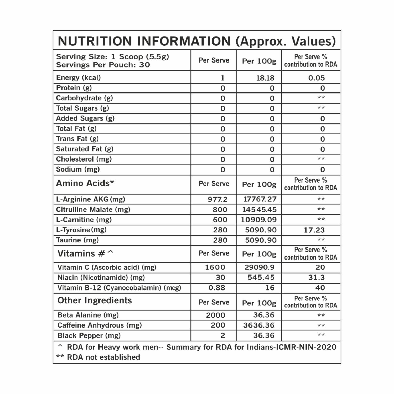 This PreWorkout is a premium supplement designed to elevate your workout session experience. This is formulated with potent ingredients which helps to boost energy, enhances focus and increases endurance. Ideal for athletes and fitness enthusiasts, this powerful blend helps maximize performance and optimize results, ensuring you push your limits every session.