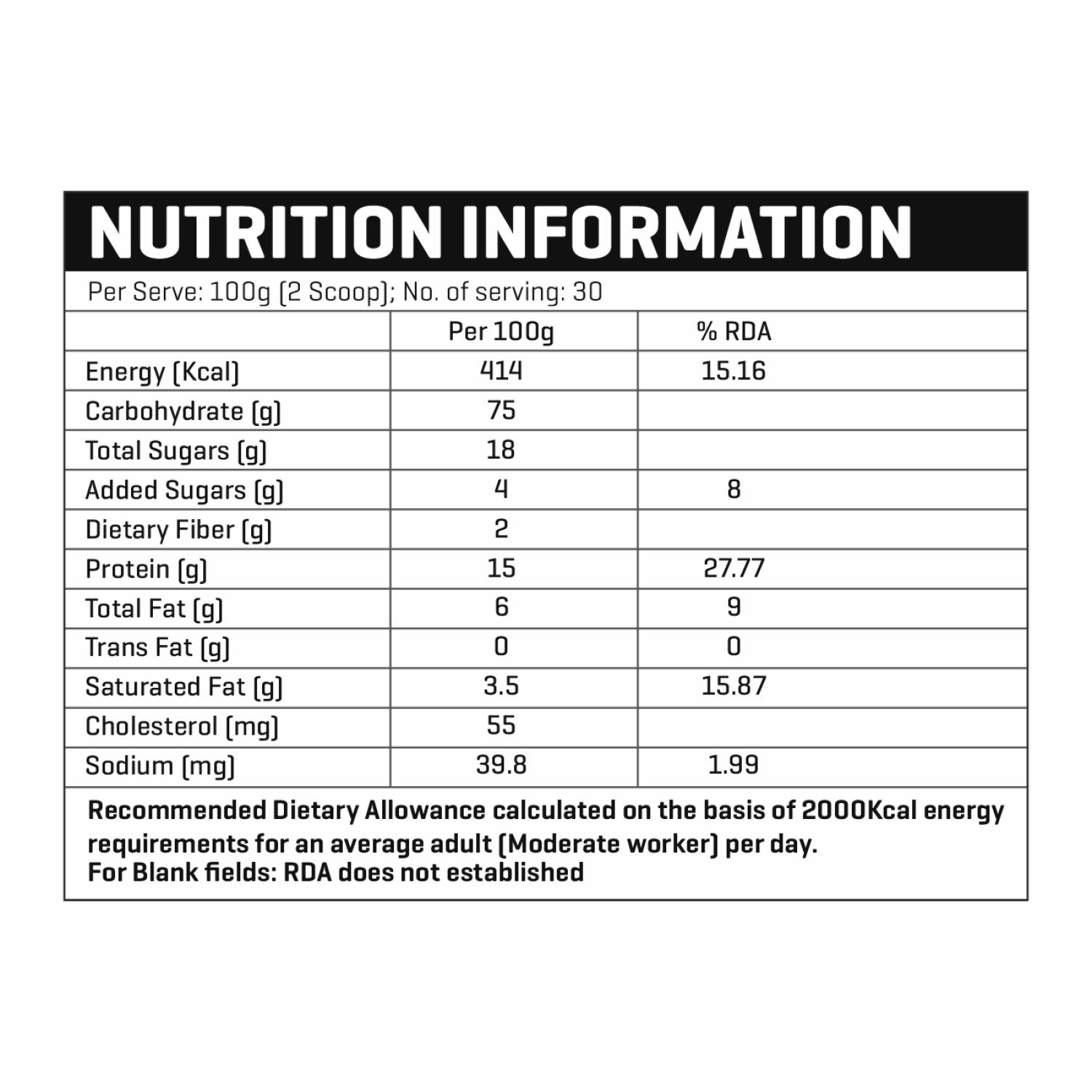 High Protein & Carbs: Fuels workouts with quality protein for optimal muscle results.